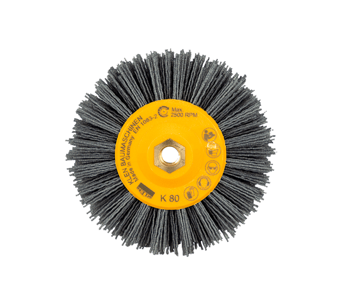 Щетка с ворсом из современного полиамидного волокна с равномерно распределенными зёрнами абразива. Абразив - карбид кремния (Silicium-carbid), находится в массе волокна.
