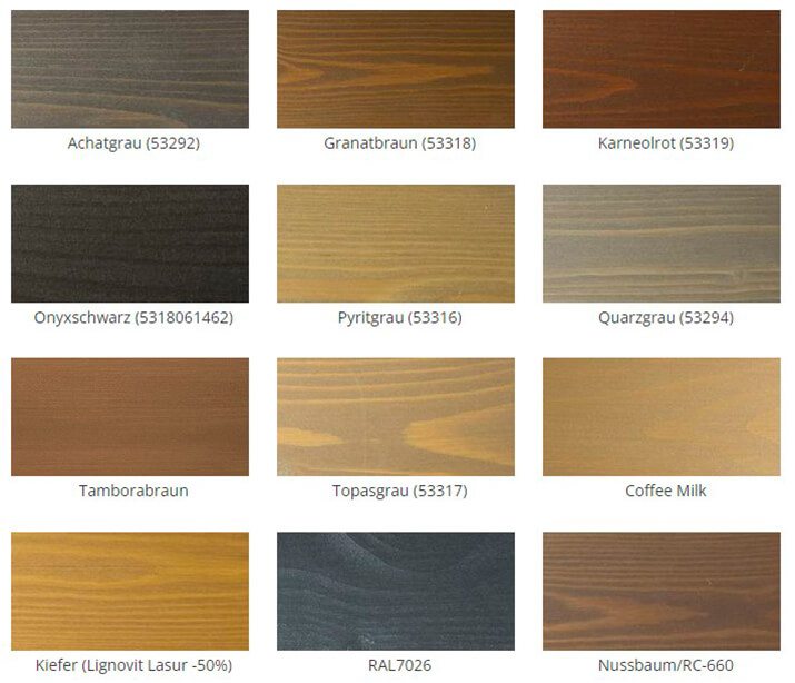 Срок обновления покрытия зависит от подготовки древесины, конструктивной защиты и выбранного оттенка. Расчетный период обновления для Lignovit Platin составляет от 5 до 15 лет. При обновлении перешлифовка не требуется, достаточно очистить поверхность от пыли и грязи