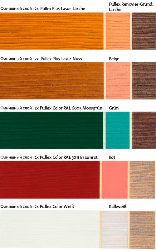 На старых, имеющих средний или сильный износ, покрытиях или на выветренной посеревшей древесине. Рекомендуется для ремонта, реновации или восстановления покрытий. В качестве грунтовочного слоя для дальнейшего нанесения лессирующих (Pullex Plus) или кроющих (Pullex Color) красок.